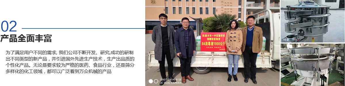 新鄉(xiāng)市萬眾機(jī)械設(shè)備有限公司是生產(chǎn)振動機(jī)械、篩分設(shè)備和過濾設(shè)備的專業(yè)廠家之一,擁有生產(chǎn)設(shè)備、雄厚的技術(shù)力量、完善的檢測手段、嚴(yán)格的管理體系。是河南省的商標(biāo)之一,被河南省科學(xué)技術(shù)廳頒定為高新技術(shù)企業(yè),為新鄉(xiāng)市“守合同重信用企業(yè)“。質(zhì)量信得過產(chǎn)品、質(zhì)量服務(wù)消費者滿意企業(yè)、合格產(chǎn)品等榮譽(yù)稱號。擁有自主進(jìn)出口經(jīng)營權(quán),產(chǎn)品遍布各地,并遠(yuǎn)銷北美、西歐及東南亞等地區(qū)。